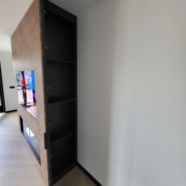 Links en rechts kast met opbergruimte.