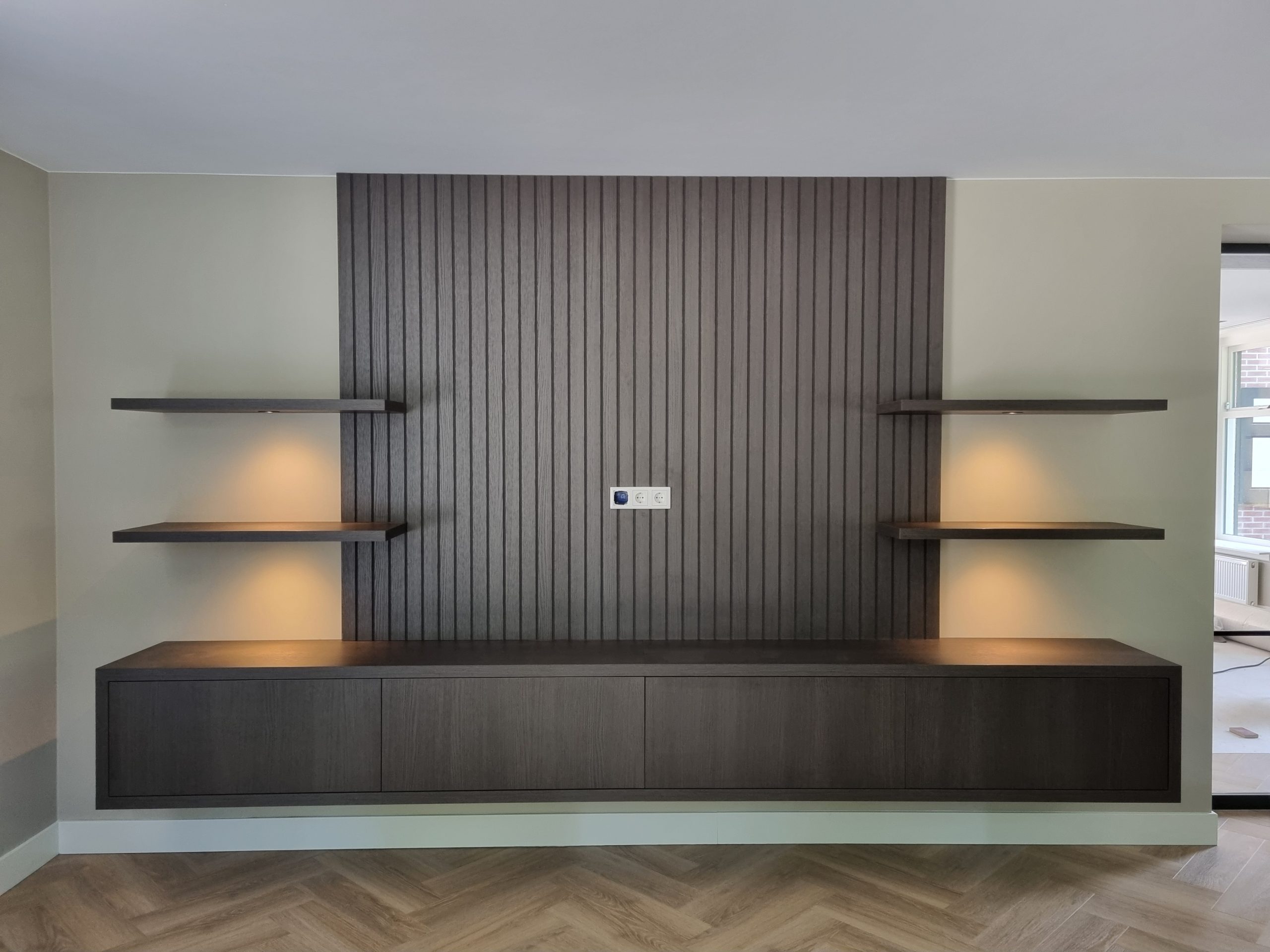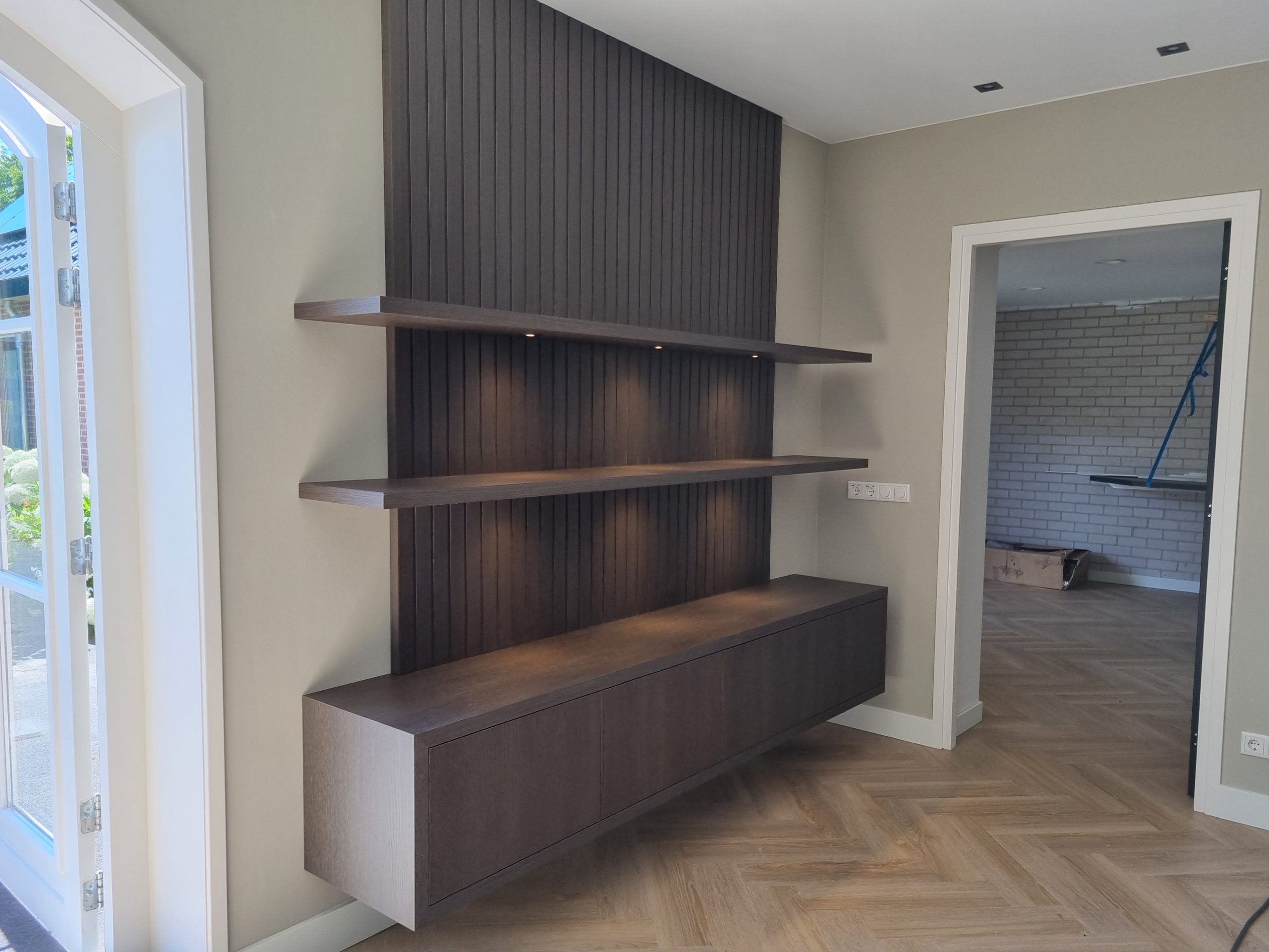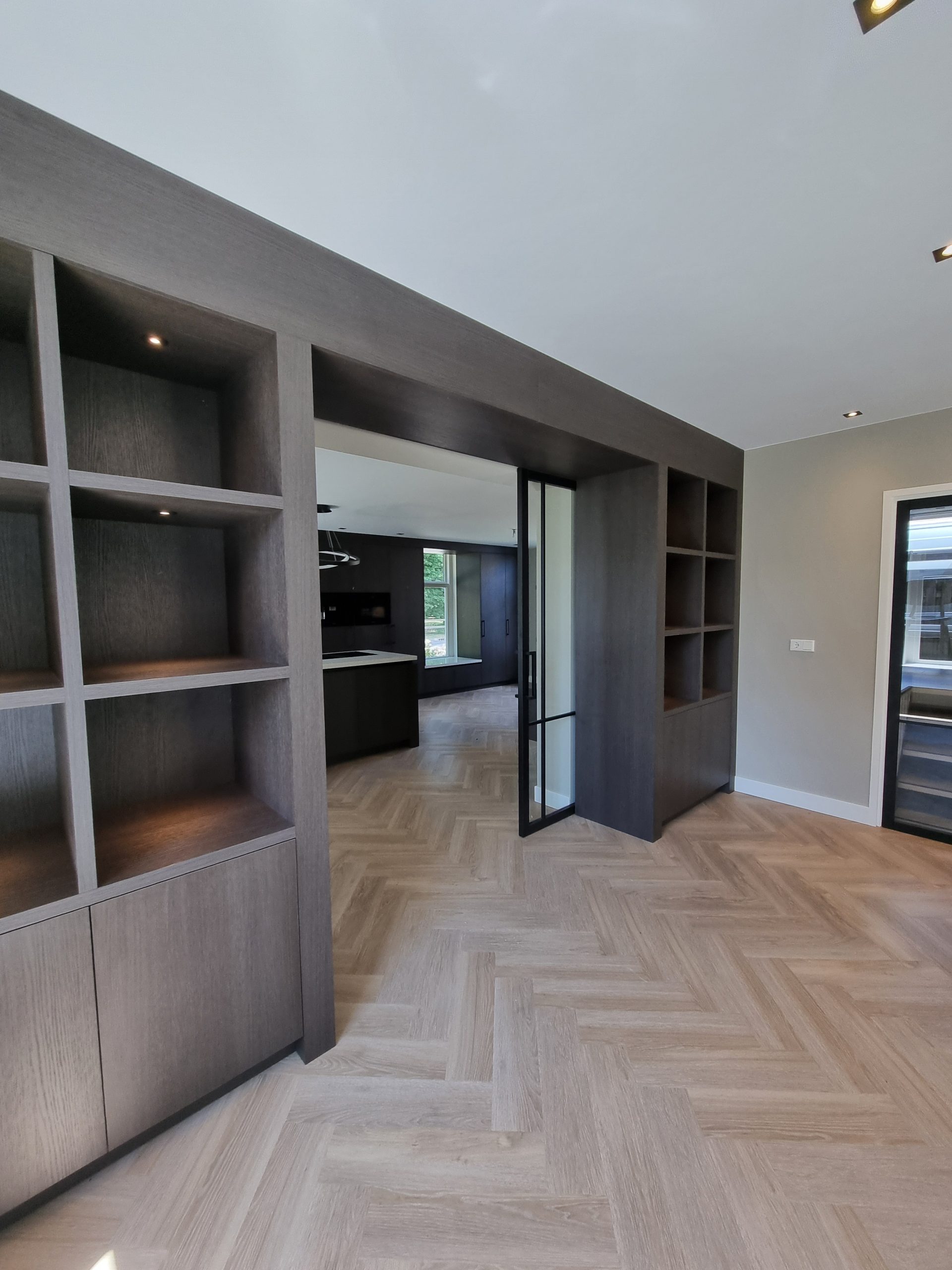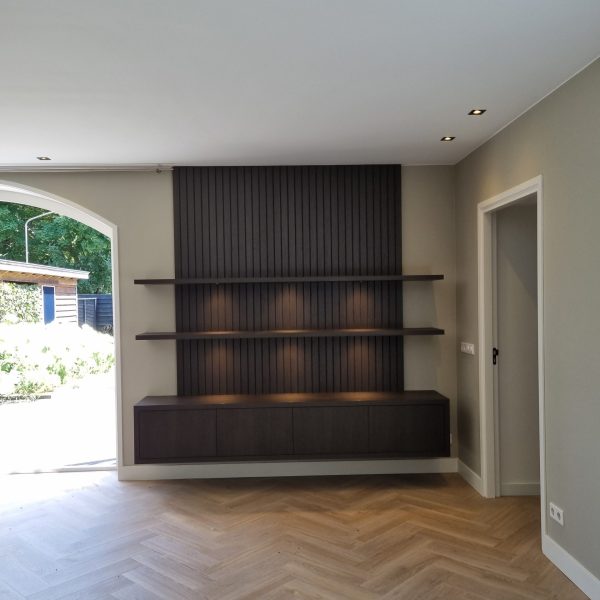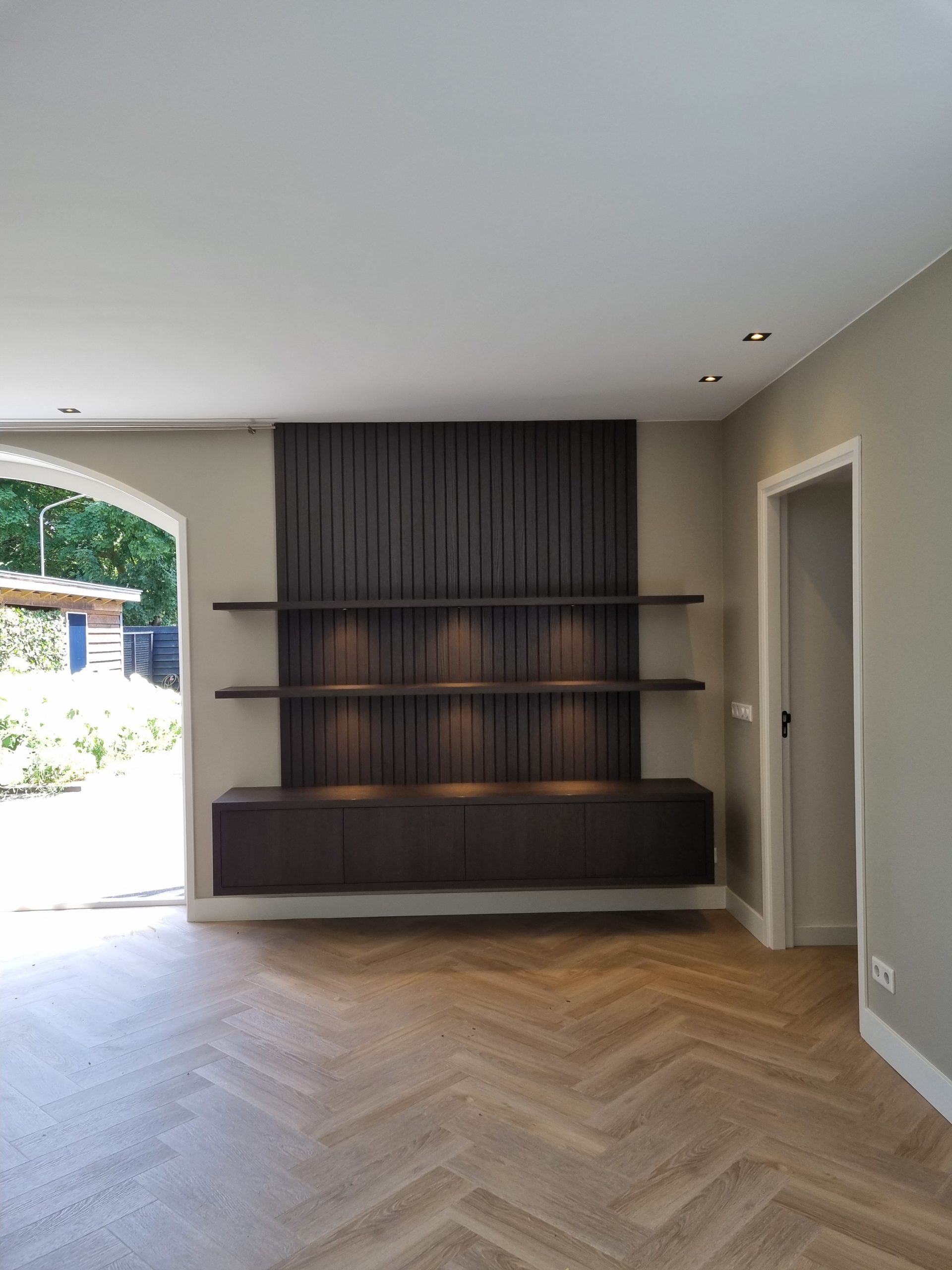 Woonhuis Lunteren Complete woninginrichting Keuken, kastenwand en eiland Tv meubels met akoestische wanden Akoestisch wandmeubel Doorloop kastenwand Badkamermeubels TERUG NAAR OVERZICHT